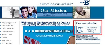 I recently came across a news article on abc.com that explains how Bridgeview bank has come up with a simple interface that allows its users with disabilities to navigate through menu options on their website with utmost ease. The idea is to install a toolbar (currently works with Internet Explorer) that allows using of simple voice commands, changing screen color, increasing and decreasing font size, and enabling or disabling of help options within the system.