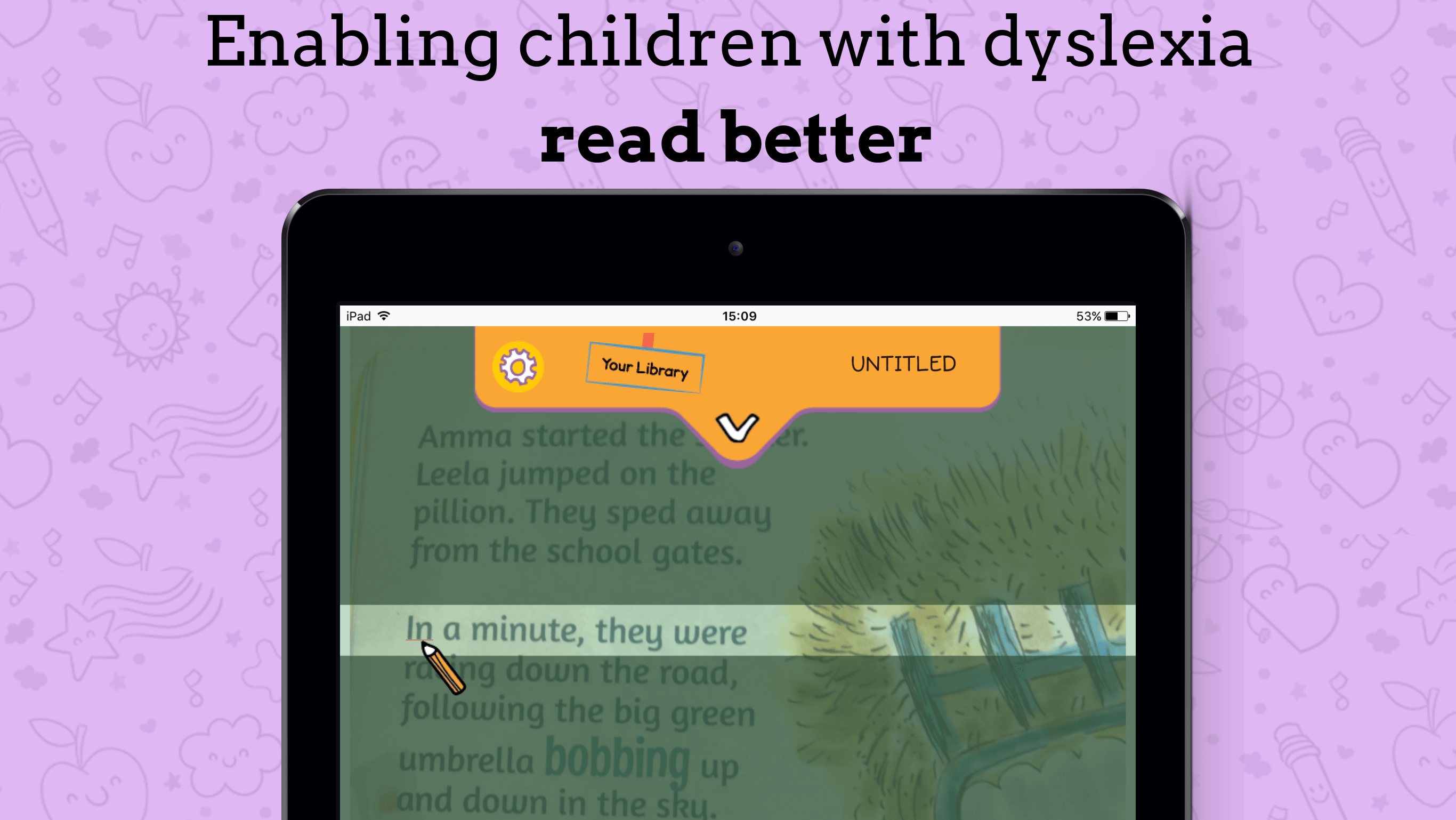 A user can either take photos of a physical book and upload them to the app or even upload existing pdf files. Once uploaded, the app identifies text in the images and prepares itself to read words aloud to the user as and when needed. The app has a very useful “pencil” icon that enables finger reading. As the user drags their finger under every word, the pencil icon underlines each word so the user can follow along and keep track. This feature helps with hand-eye coordination and lowers convergence difficulties. If the reader has difficulty pronouncing a word, the “hint” section shows several visual cues for what that word is, and also pronounces it out loud. There is also an “Auto-Read” feature that reads all the text out loud while also highlighting each word, thereby encouraging sight reading. In order to make reading completely distraction free, the app removes background images and also focusses on single lines.