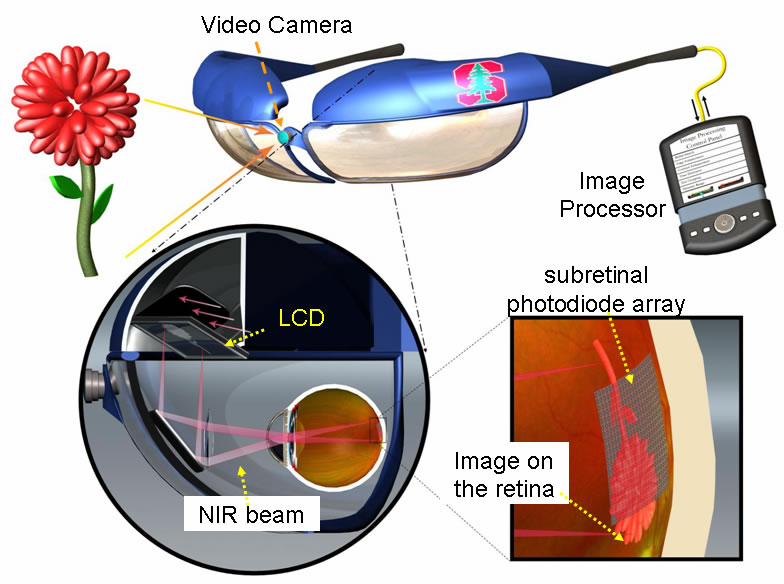 Hit the source links to read more about the wireless bionic eye. If you want more technical details, you would want to read the Stanford University source link.