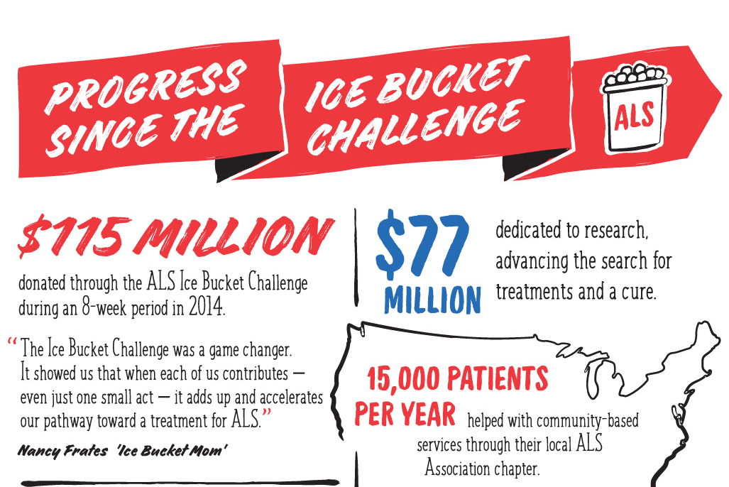 Ever wondered what the outcome was of the ALS Ice Bucket Challenge in 2014 that swept the entire nation? A lot of money was raised from that challenge which is being used for research and research projects for curing ALS. Read the infographic below to find out more.