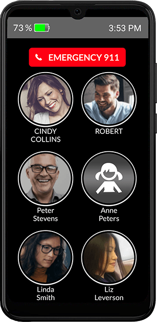 Contacts on the primary screen can be added and removed by a caregiver through an easy to use portal. The same portal can be used to track the person’s phone/location, disable the power button so the phone stays on all the time, and restrict calls only from contacts, preventing calls from scammers and robocalls.