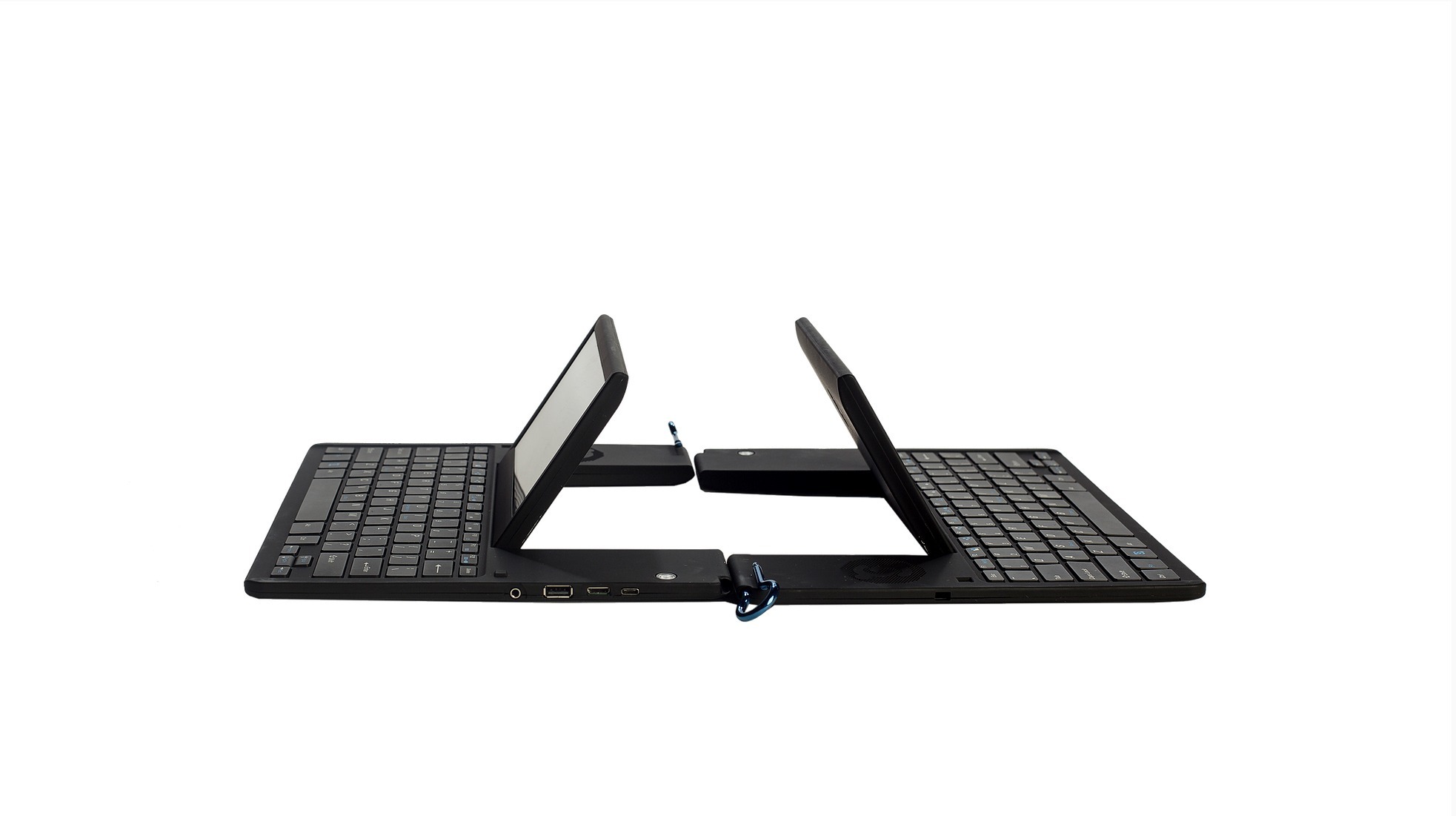 The UbiDUO 3 has two keyboards facing each other and small screens that are meant for each person communicating. What one person types on their keyboard can be seen on the other person’s screen immediately and vice versa. This enables face to face conversation between hearing and hard of hearing people without a sign language interpreter.