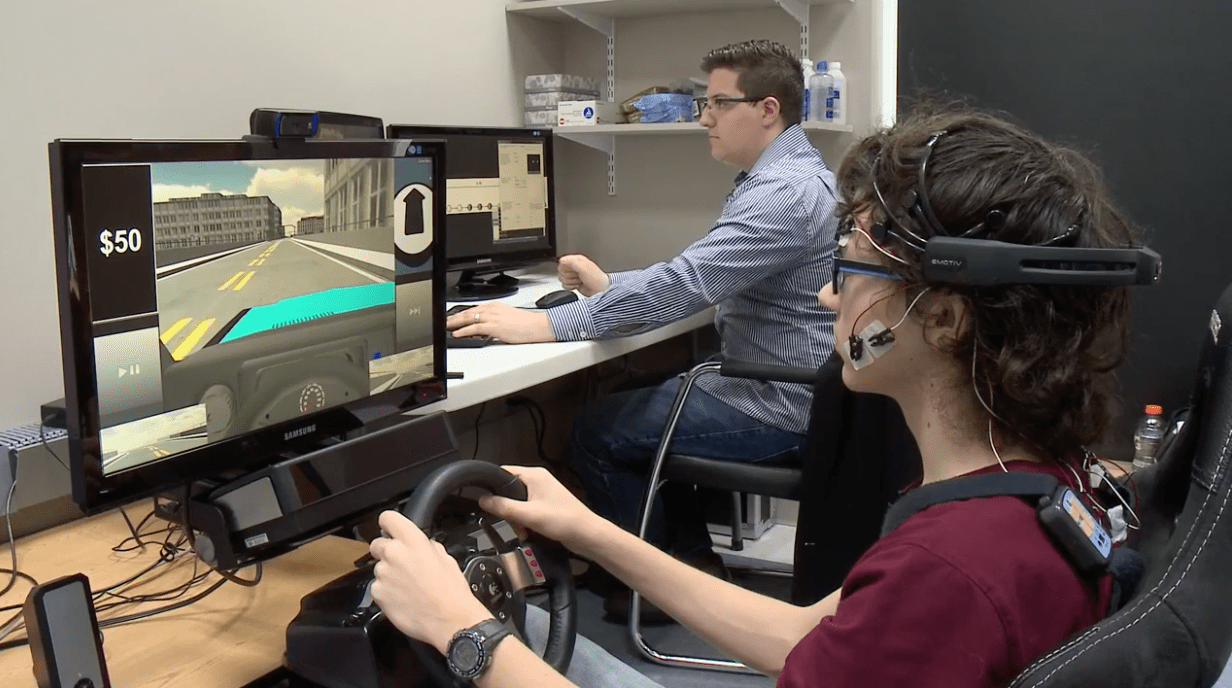 Brandon, who has high functioning Asperger’s and ADHD (which means sometimes he can’t focus on anything) has been a suject of this study. Brandon mentions that these “interventions” are helping him. The eye tracker in the simulator picks up things that he doesn’t realize he needs to pay attention to, and later notifies him about them. In the future, when Brandon’s driving, he remembers to keep those things in mind.